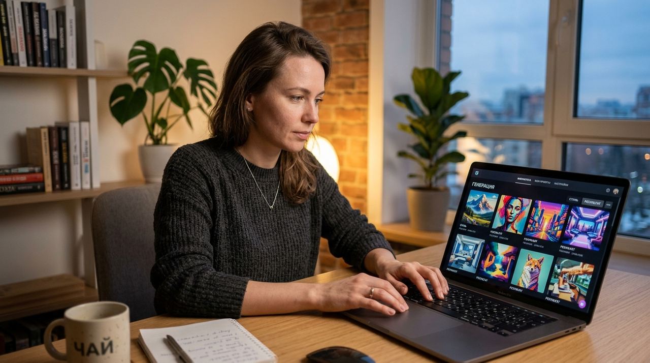 Вы не водите пальцем по экрану. Вы «рисуете словами». Ваша роль, арт-директор, который ставит задачу нейросети-художнику.