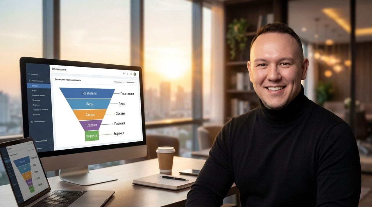 Воронка продаж это путь вашего клиента. От первой мысли «где бы это найти» до чека «спасибо за покупку». По нашим данным, воронка превращает случайные заявки в предсказуемый поток клиентов. Я покажу, как это работает на практике. Не по учебникам, а на примере 47 проектов, которые мы вели.